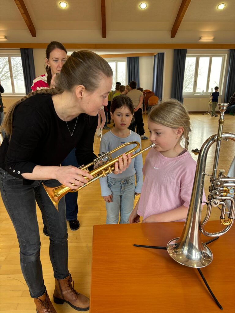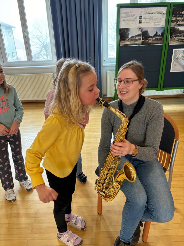 Vorgestellt wurden Klarinette, Querflöte, Saxophon, Trompete, Horn, Posaune, Tuba und Schlagzeug. Jedes Instrument erklärte auf kindgerechte Weise seine besonderen Eigenschaften und präsentierte anschließend eine kurze Klangprobe. So konnten die Kinder die unterschiedlichen Klänge und Stimmungen direkt vergleichen.